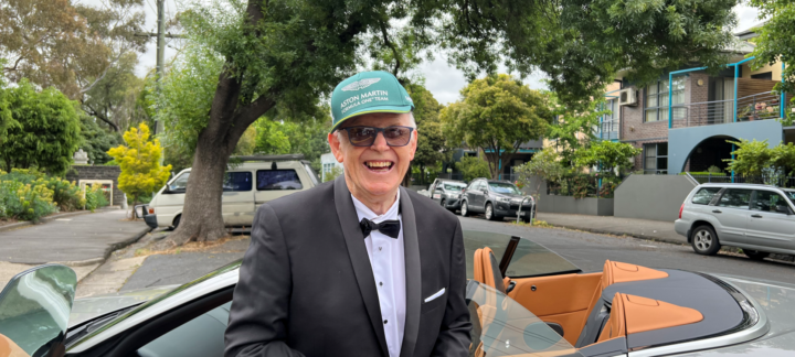 Sitting in the Aston Martin, tuxedo on, roof down, and smile plastered from ear to ear, Robert looked right at home – a true James Bond.