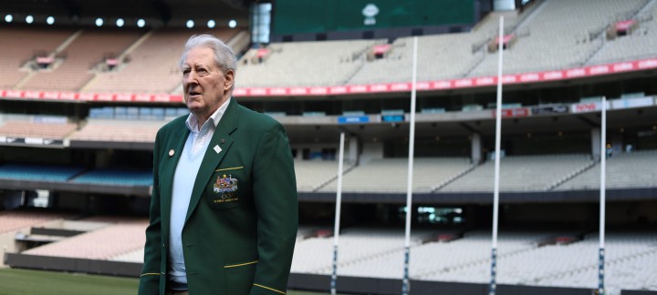“Welcome James ‘Bob’ Joyce, 1956 Olympian 110m hurdles,” Bob said, reading from the huge MCG scoreboard. “Wow, is that for me? Thank you.”